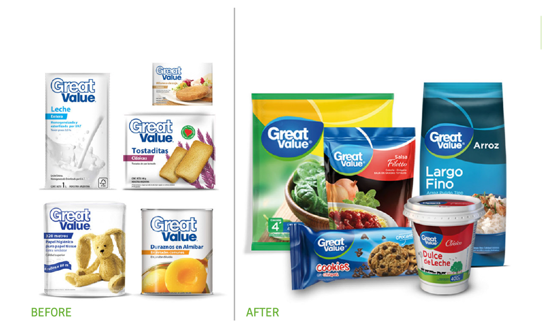 Walmart nos convocó para redefinir los lineamientos de su marca privada, Great Value/Equate. Los objetivos planteados fueron rediseñar la identidad visual y el sistema de packaging de la marca, para crear un diseño propio para Argentina que permita lograr mayor consistencia entre las categorías, manteniendo las particularidades que diferencian a cada una de ellas.